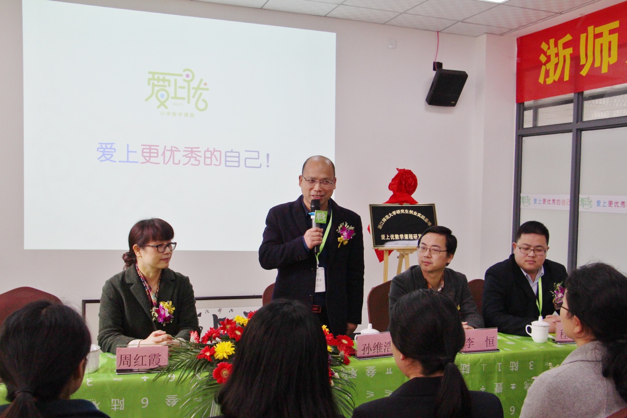 爱上优品牌创始人孙维浩总经理对各位领导、老师的到来表示感谢。孙维浩表示,很幸运能够跟师大结缘,也非常荣幸能够获得“浙江师范大学创业导师”的称号。他希望在以后的学生职业道路中多为学生提供帮助,和同学们一起成长,为同学们提供更好的学习平台。