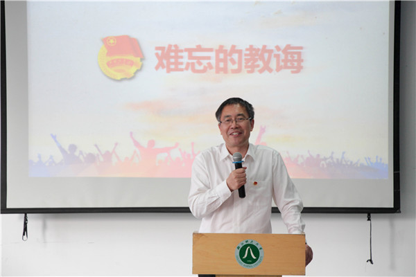 校党委委员、组织部部长梁克东为团支部颁发五四红旗团支部奖项。