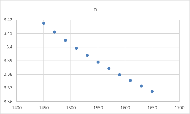 采用上图中的波导结构,芯层折射率参考范围如右图,hco范围参考:200~300nm;