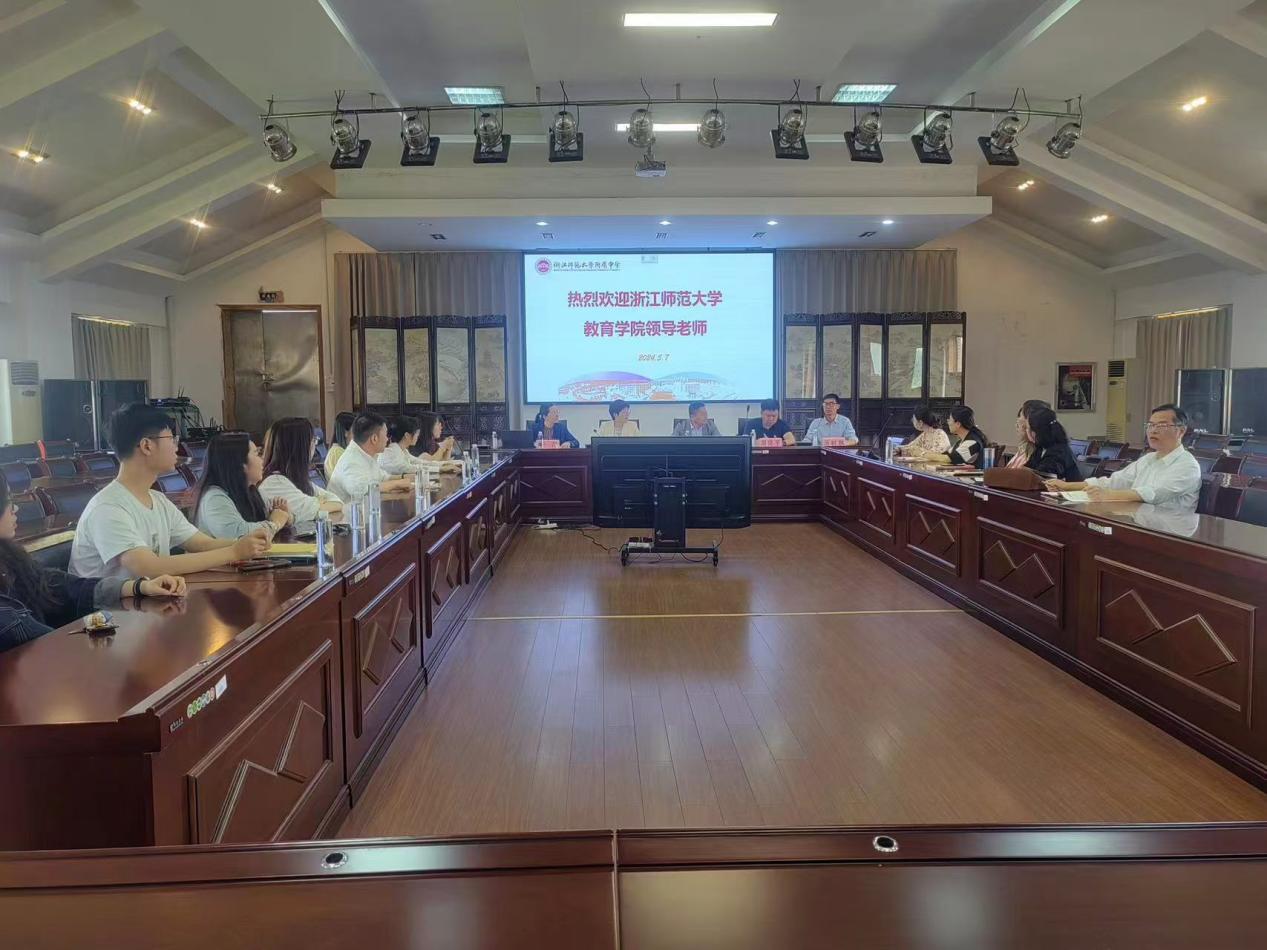 教育学院院长黄晓、副院长王占军、项目主管陈法宝、学科教学(历史)专业导师张禄佳等一行4人走访温州龙湾中学和台州路桥中学实习点,与实习学校相关负责老师交流了实习生的工作情况和未来的合作方向,实习学生代表就实习以来的工作和生活向学院领导做了汇报。黄晓院长感谢实习学校的大力支持,并表示学院今后将进一步加强校校合作、校地合作,为教育硕士实习提供优质的实践基地资源,提升教育硕士培养质量,同时希望实习生们能把握机会,快速成长。