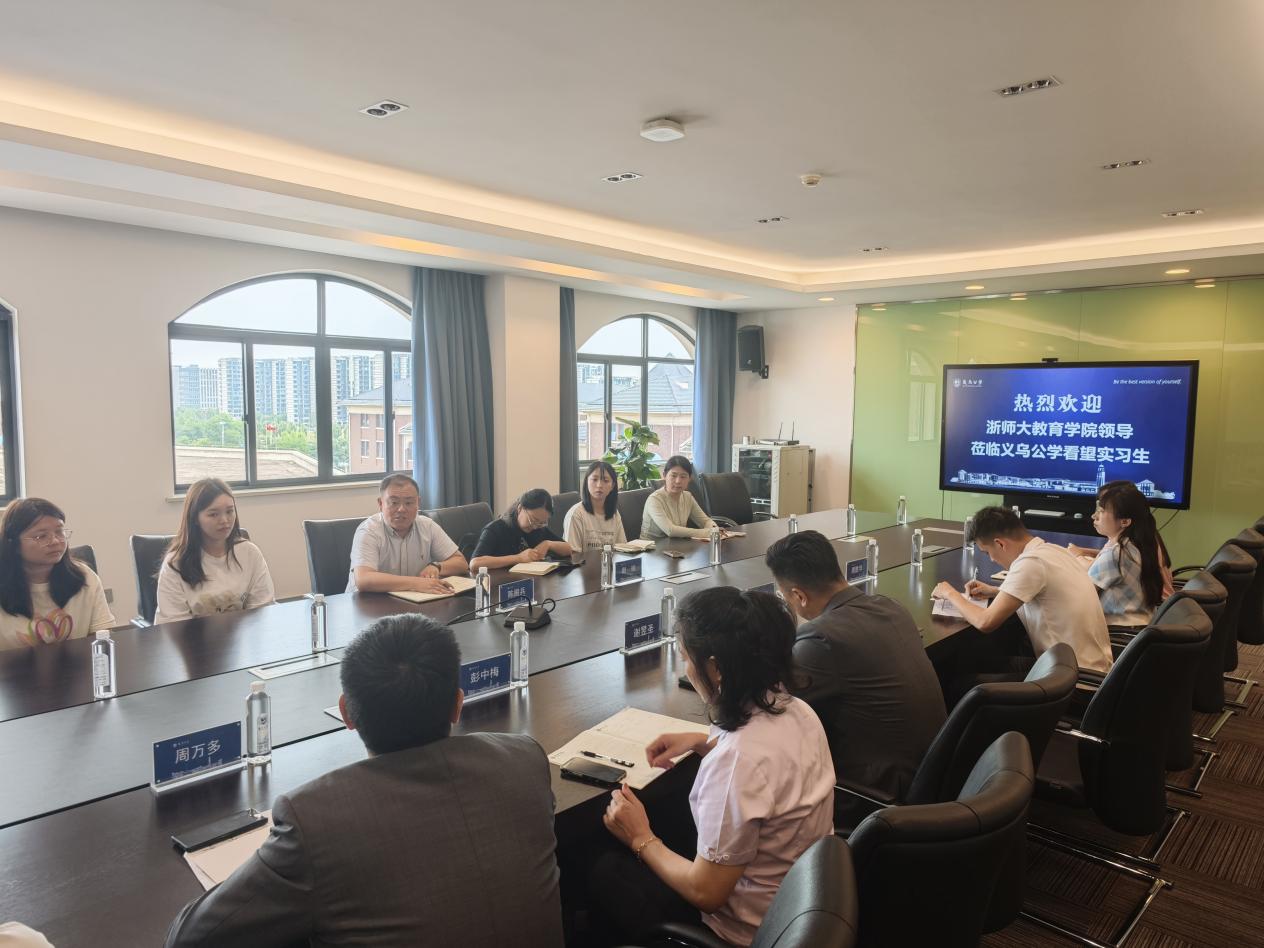 教育学院教育技术系主任王小明、2022级教育硕士辅导员王萌走访金华四中、五中和南苑小学实习点。王小明副教授感谢各实习学校为研究生实践实习提供的平台支持,也感谢实习指导教师的悉心指导,并对实习生提出三点希望:一是眼里有光,始终保持乐观积极的心态,以饱满的热情和坚定的信念面对挑战;二是手里有活,积极参与教育教学和班级管理的实践之中,不断提升专业素养和实践能力;三是脚下有路,在实习期间思考未来的职业发展方向,为今后的成长和发展奠定坚实的基础。